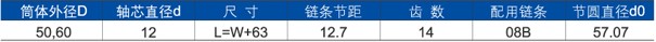 Tube D              Shaft d               Size               Chain pitch        Teeth          Chain's type