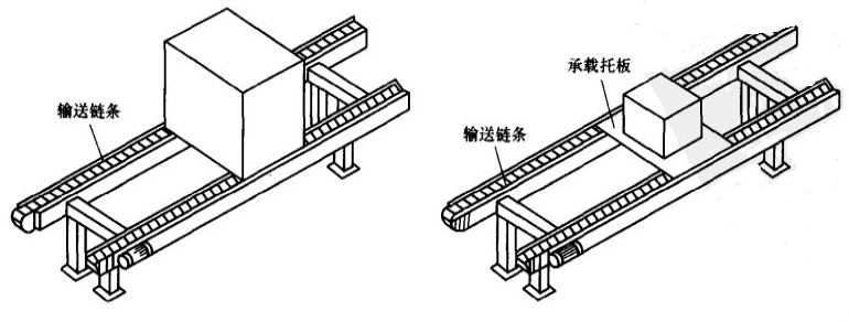 1. Chain conveyor is composed of frame, chain, legs and sprockets, is very suitable for heavy-load transportation.