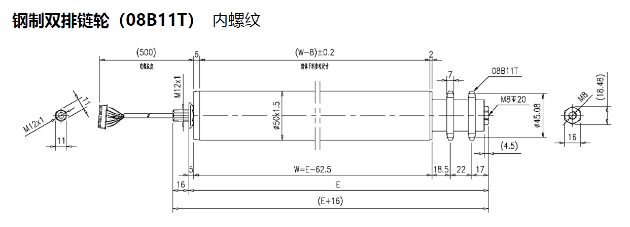 電動(dòng)輥筒 鋼制雙排鏈輪(08B11T) 內(nèi)螺紋